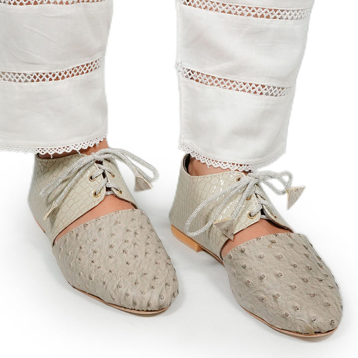 EG2-Gray embodies delightful, opulent, and timeless artistry, crafted and adorned with a captivating blend of intricate design. These treasured symbols of Pakistan’s heritage are meticulously hand-sewn by dedicated shoemakers from rural regions, proudly showcasing the exquisite allure of captivating feet.
