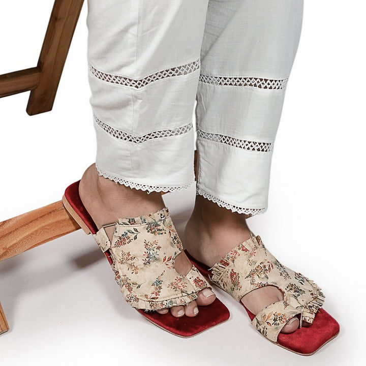 FL-S6-Cream represents a prime example of delightful, opulent, and time-honored craftsmanship showcased in elegant flats . These flats stand as cherished cultural legacies of Pakistan, meticulously stitched by dedicated rural shoemakers to showcase the unparalleled beauty of captivating feet.