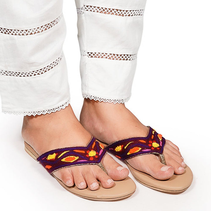 FL-SJ10-Fawn represents a prime example of delightful, opulent, and time-honored craftsmanship showcased in elegant flats adorned with exquisite machine embroidery. These flats stand as cherished cultural legacies of Pakistan, meticulously stitched by dedicated rural shoemakers to showcase the unparalleled beauty of captivating feet.