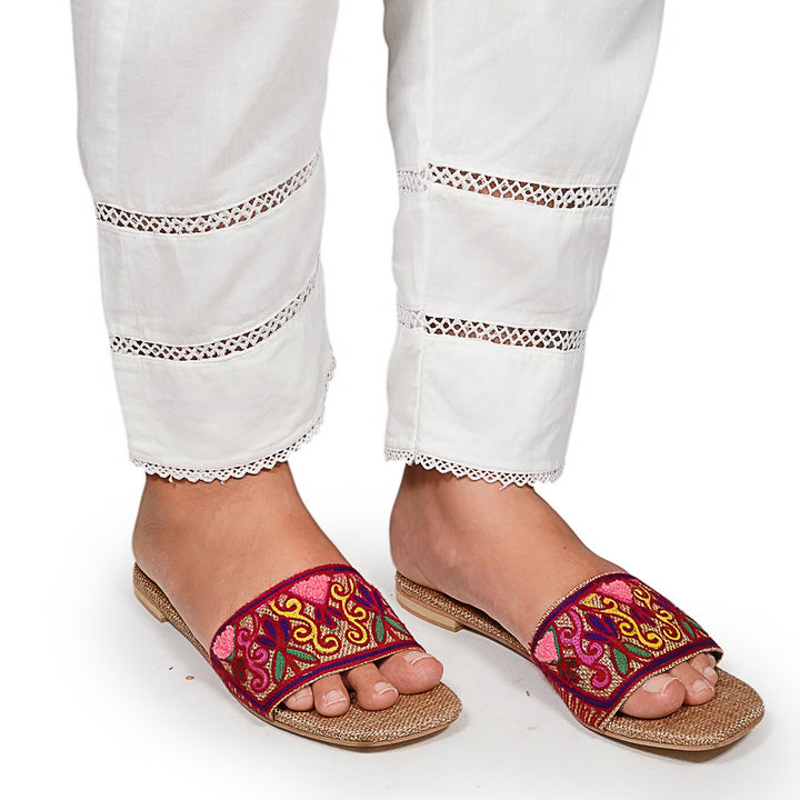 FL-SJ3-Fawn represents a prime example of delightful, opulent, and time-honored craftsmanship showcased in elegant flats adorned with exquisite machine embroidery detailing. These flats stand as cherished cultural legacies of Pakistan, meticulously stitched by dedicated rural shoemakers to showcase the unparalleled beauty of captivating feet.
