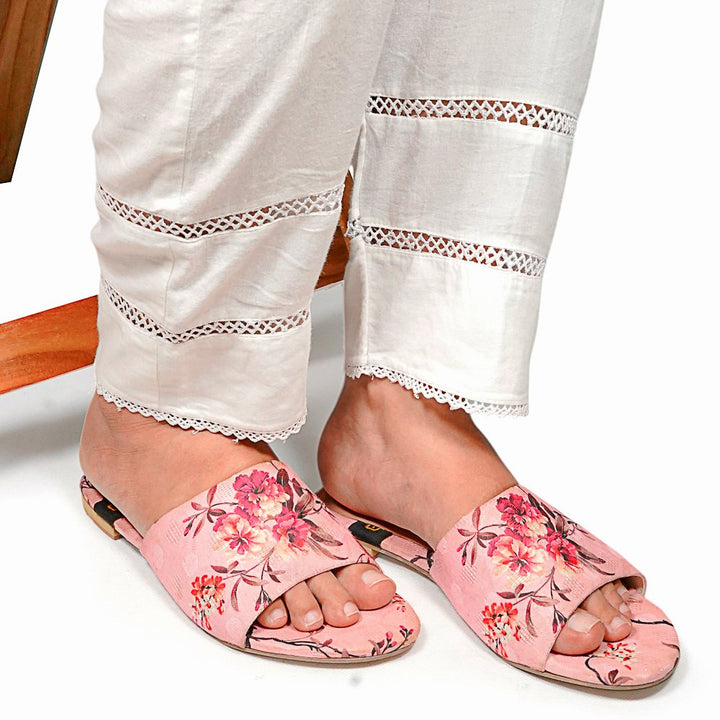 These printed slippers represent a prime example of delightful, opulent, and time-honored craftsmanship showcased in elegant flats, meticulously made by dedicated rural shoemakers to showcase the unparalleled beauty of captivating feet.