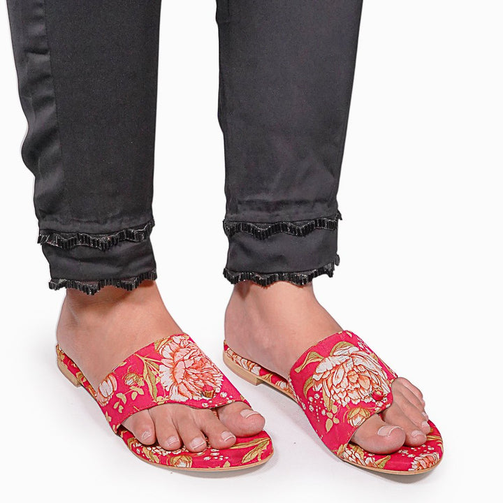 These printed slippers represent a prime example of delightful, opulent, and time-honored craftsmanship showcased in elegant flats, meticulously made by dedicated rural shoemakers to showcase the unparalleled beauty of captivating feet.