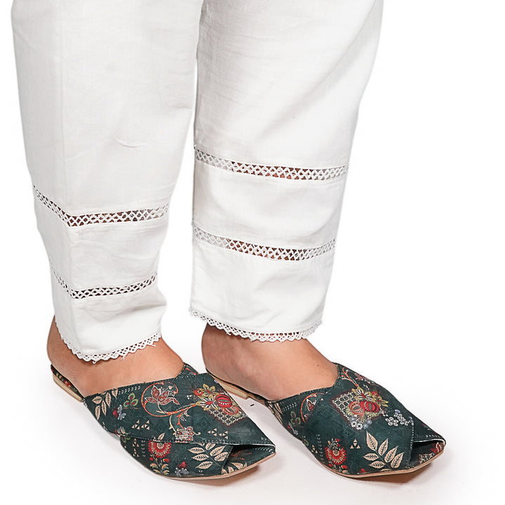 These printed slippers represent a prime example of delightful, opulent, and time-honored craftsmanship showcased in elegant flats, meticulously made by dedicated rural shoemakers to showcase the unparalleled beauty of captivating feet.