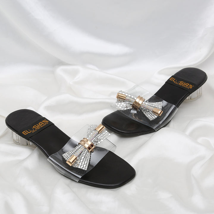Heel-SQ1-Black(Bow) Chappal with exquisite bow detail on the upper is a true fashion statement. This elegant footwear seamlessly combines the allure of a classic heel with a playful twist, making it a must-have addition to your collection. The gracefully designed bow adds a touch of sophistication, while the comfortable heel ensures both style and comfort are in perfect harmony. Whether youβre dressing up for a night out or adding flair to your everyday look, Heel-SQ1-Black(Bow) Embellished Heel Chappal is your go-to choice for effortlessly elevating your ensemble. NOTE: Product color may vary due to lighting or screen settings.