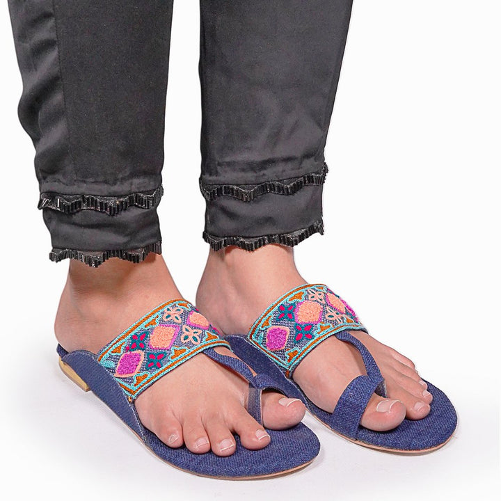 KL-SJ5-Denim represents a prime and outstanding example of Kolhapuri footwear, characterized by its delightful, opulent, and traditional craftsmanship. Crafted on a foundation of denim jute, these shoes showcase intricate handmade embellishments. These remarkable creations are cherished cultural artifacts of Pakistan, meticulously stitched by dedicated cobblers from rural communities, showcasing the unparalleled elegance designed to adorn and enhance the allure of oneβs feet.