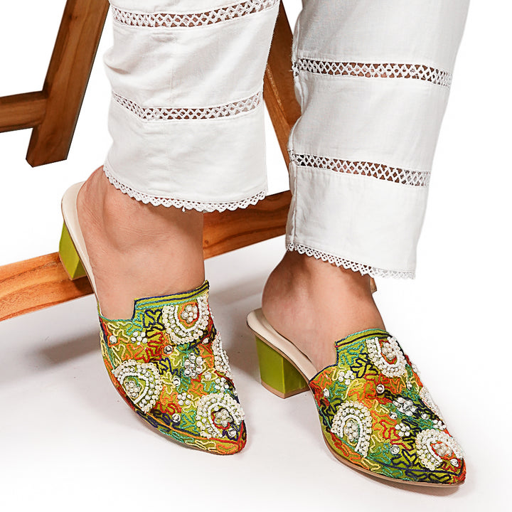 ML-As12-Dhani stands as a true embodiment of delightful, opulent, and timeless artistry, crafted upon a rich green foundation and adorned with a captivating blend of intricate embroidery. These treasured symbols of Pakistan’s heritage are meticulously hand-sewn by dedicated shoemakers from rural regions, proudly showcasing the exquisite allure of captivating feet.