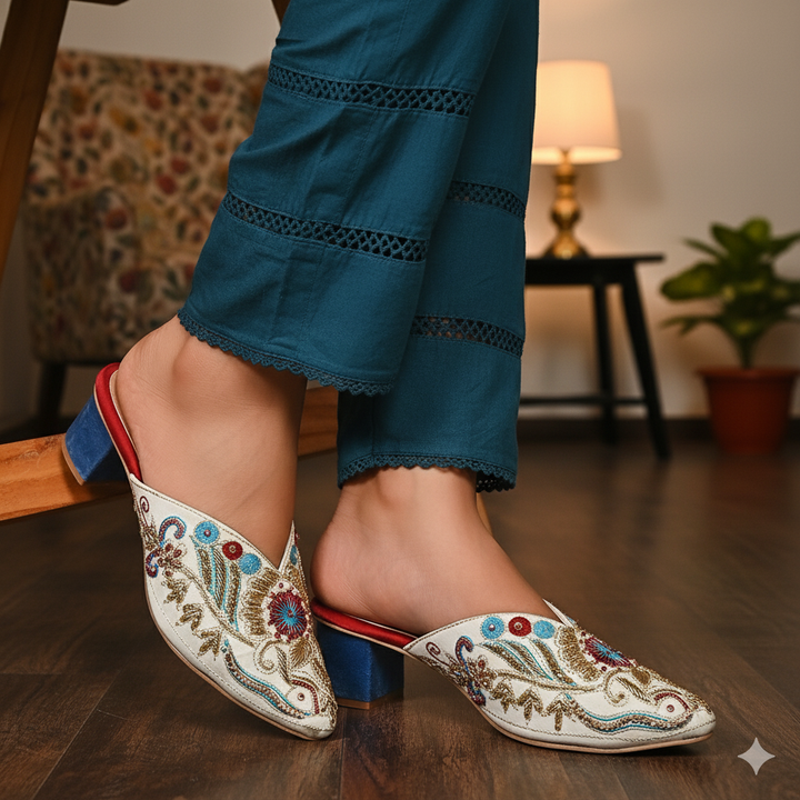 ML-S12-O. White embodies delightful, opulent, and timeless artistry, crafted upon a rich O. White foundation and adorned with a captivating blend of intricate embroidery. These treasured symbols of Pakistan’s heritage are meticulously hand-sewn by dedicated shoemakers from rural regions, proudly showcasing the exquisite allure of captivating feet.