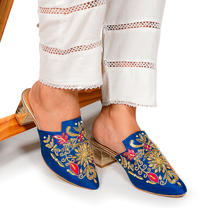 ML-S13-Blue embodies delightful, opulent, and timeless artistry, crafted upon a rich blue foundation and adorned with a captivating blend of intricate embroidery. These treasured symbols of Pakistan’s heritage are meticulously hand-sewn by dedicated shoemakers from rural regions, proudly showcasing the exquisite allure of captivating feet.