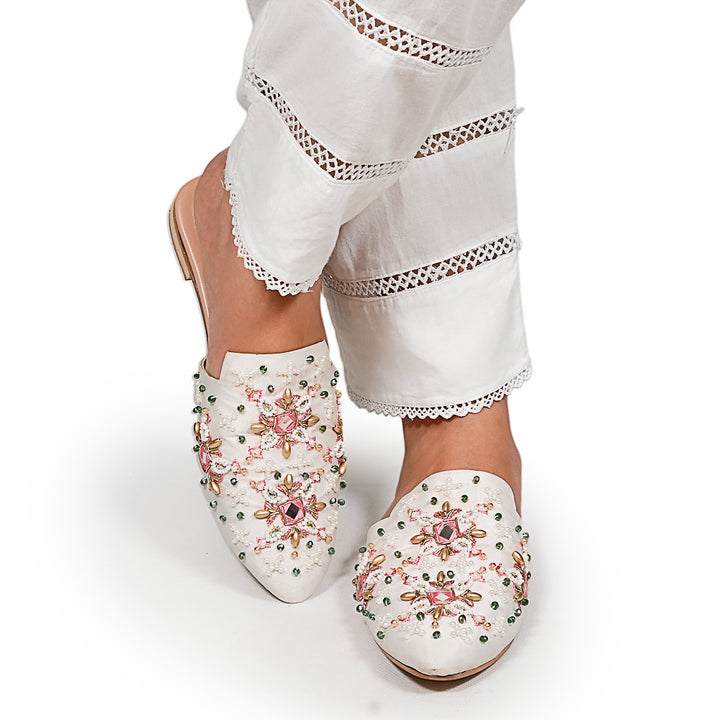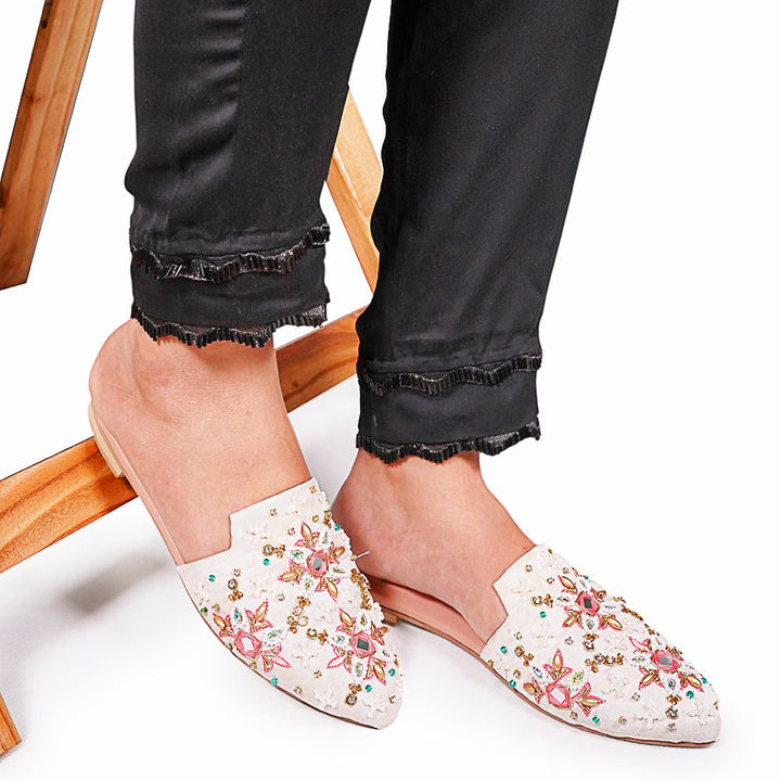 ML-WS7-Off White stands as a true embodiment of delightful, opulent, and timeless artistry, crafted upon an Off-White foundation and adorned with a captivating blend of intricate embroidery. These treasured symbols of Pakistan’s heritage are meticulously hand-sewn by dedicated shoemakers from rural regions, proudly showcasing the exquisite allure of captivating feet.