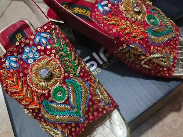 The Sandal-Q2-Red is an exquisite representation of traditional craftsmanship and modern elegance. Handcrafted with meticulous attention to detail, this women’s sandal captures the essence of Pakistan's vintage footwear culture while incorporating contemporary design elements. Made from high-quality material, the sandal features intricate embroidery and embellishments that showcase the rich cultural heritage of Pakistan. With its comfortable sole and adjustable straps, the Sandal-Q2-Red seamlessly blends tradition and comfort, making it a perfect choice for both casual outings and special occasions.